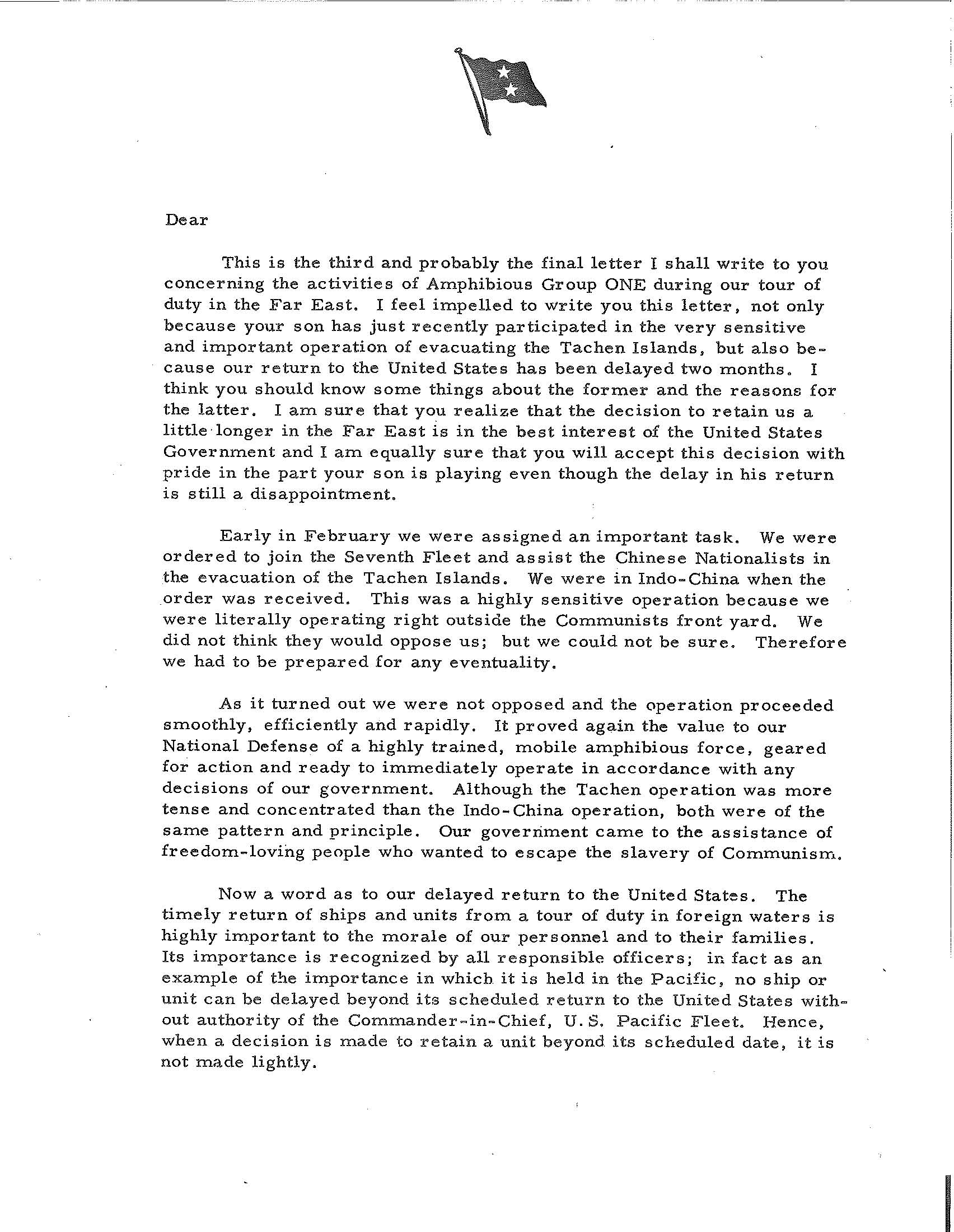 Letter from Rear Admiral Sabin to Families - Page 1 |