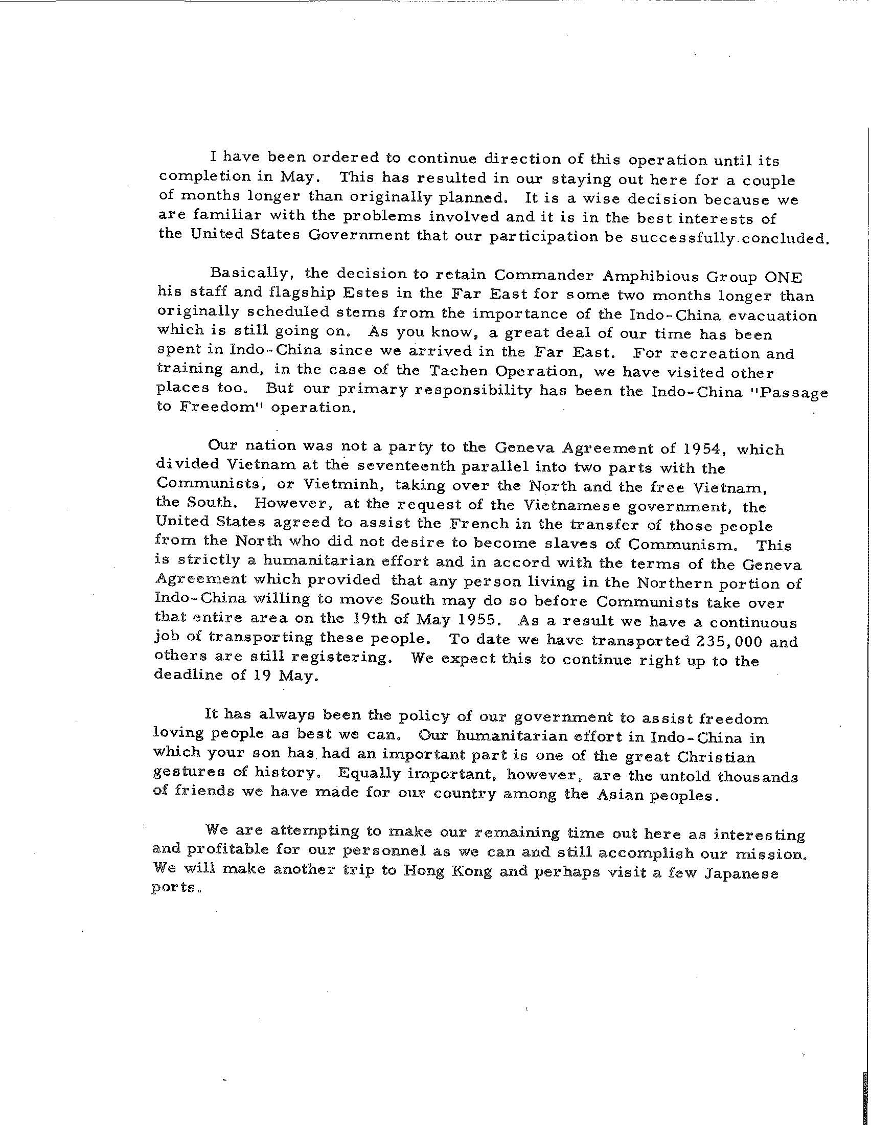 Letter from Rear Admiral Sabin to Families - Page 2 |