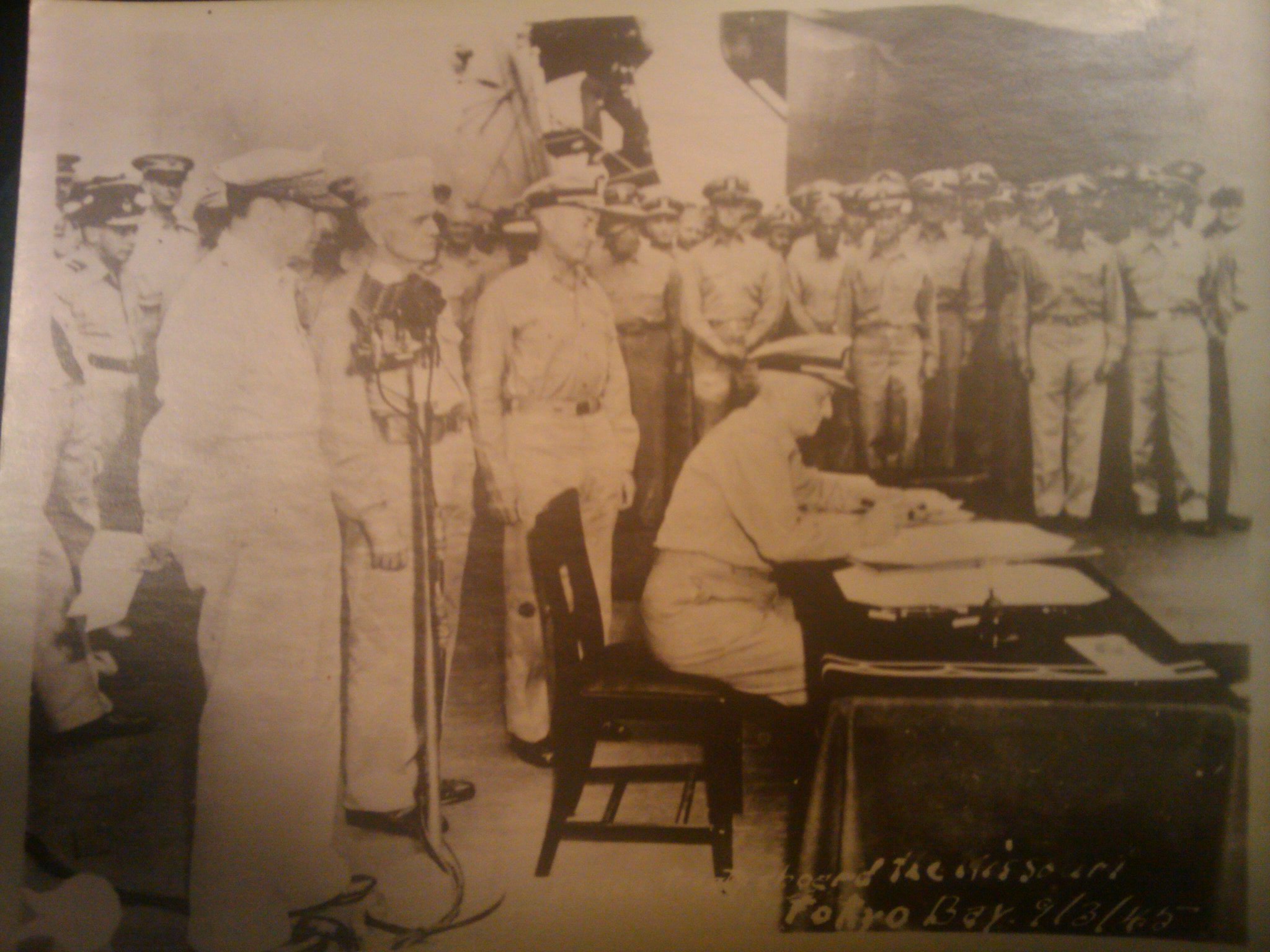 I found these with his things. The flag pictures are from Iwo Jima, the other is a photo of MacArthur signing the peace treaty in 1945. Finally, a photo of the ship.