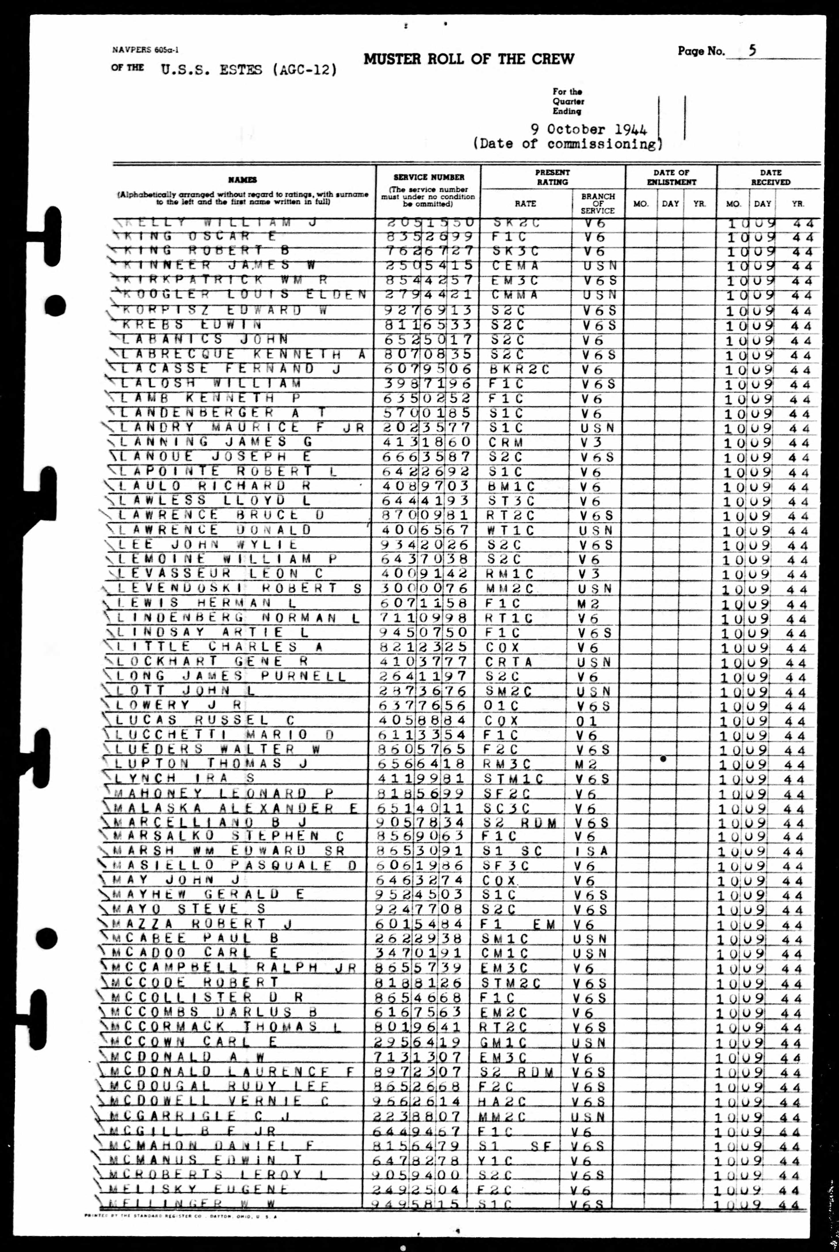 Estes was not acquired by the Navy until 1944. Though Dad enlisted in