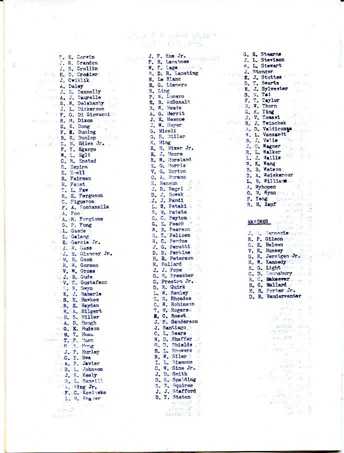 I remember at one time we had 2 admirals and 23 captains aboard after the 7th fleet flag came aboard. The uniform of the day was undressed blues or whites.. We arrived in Shanghai in November of 45 and I departed the ship July of 46. During that time we made only one trip to Northern China so except for that trip we were tied up at Shanghai .