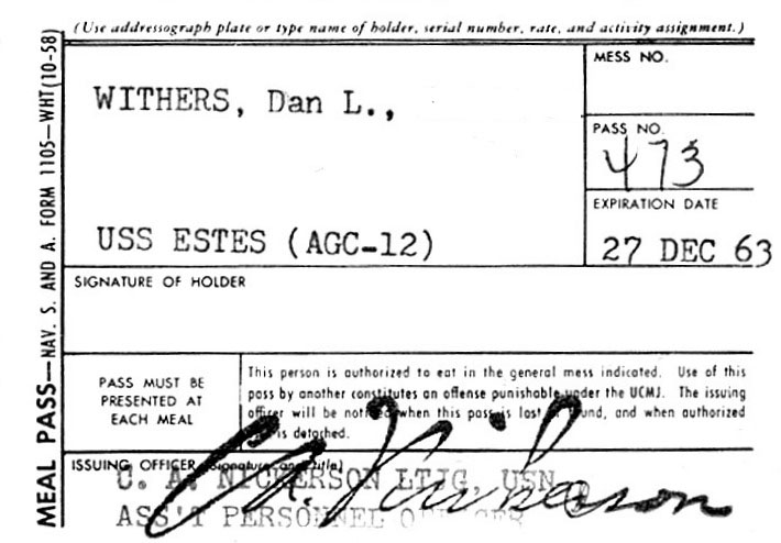 At the end of boot camp when orders were handed out I was shocked to see that I was headed to the fleet and not ETA School as promised. I went to the USS Estes, AGC-12 instead. She was in dry dock at the Long Beach Naval Shipyard. It turns out I was on a 6 month program called Pre School Indoctrination.